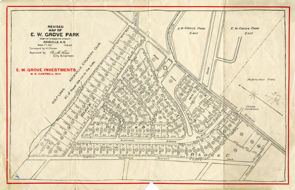 Edwin Wiley Grove began developing GPSMN in 1907 when he purchased the land which today encompasses the three of the neighborhood’s areas — Grove Park, Proximity Park, and Sunset Terrace. All of which are listed on the National Register of Historic Places.